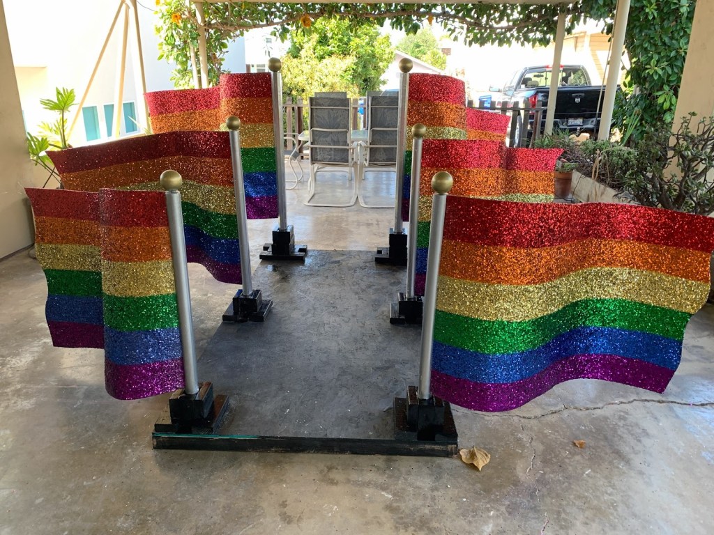 2022 Commission- Large Scale Sculptures for Floatasia Floats “Glitter Flags” 6 large rigid flags covered in the rainbow colors and glitter were used in the 2022 Pride Parade San Diego